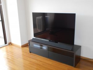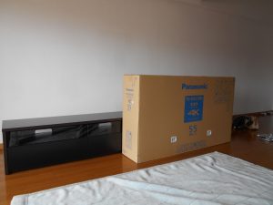 テレビ台を組み立て、これから、パナソニック製 TH-55FZ1000の設置となります。ビエラ史上最高画質の4K有機ELです。