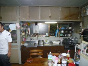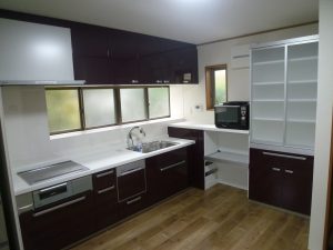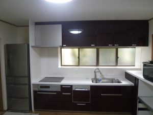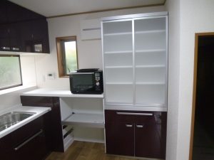 収納も少なく、作業動線も行ったり来たりでした。キッチンの横にハイカウンターとカップボードを設置し、反対側に袖壁を造作し冷蔵庫を置けるようにしました。多かった食器類もすっきり収納でき、IH・ビルトイン食器洗い機も設置しました。安心・楽々の炊事が出来るようになりました。キッチンの色は、高級感抜群のボルドーレッドです。 BEFORE AFTER